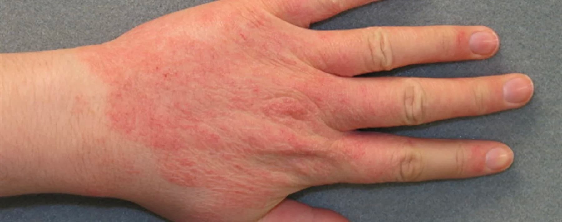 In people with existing hand dermatitis, it can also cause, small blisters, scaling, itching and redness. In people with darker skin, it can show as darker skin patches. This is known as protein contact dermatitis and it affects mostly food handlers.