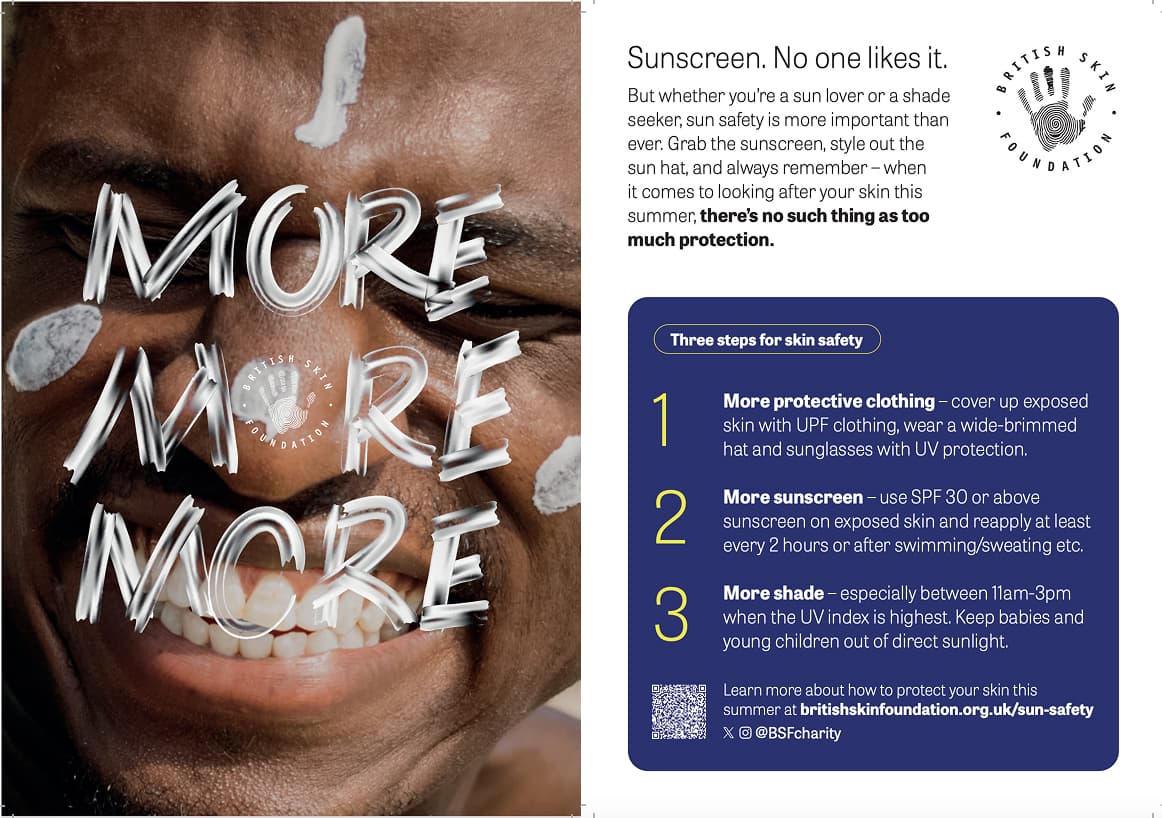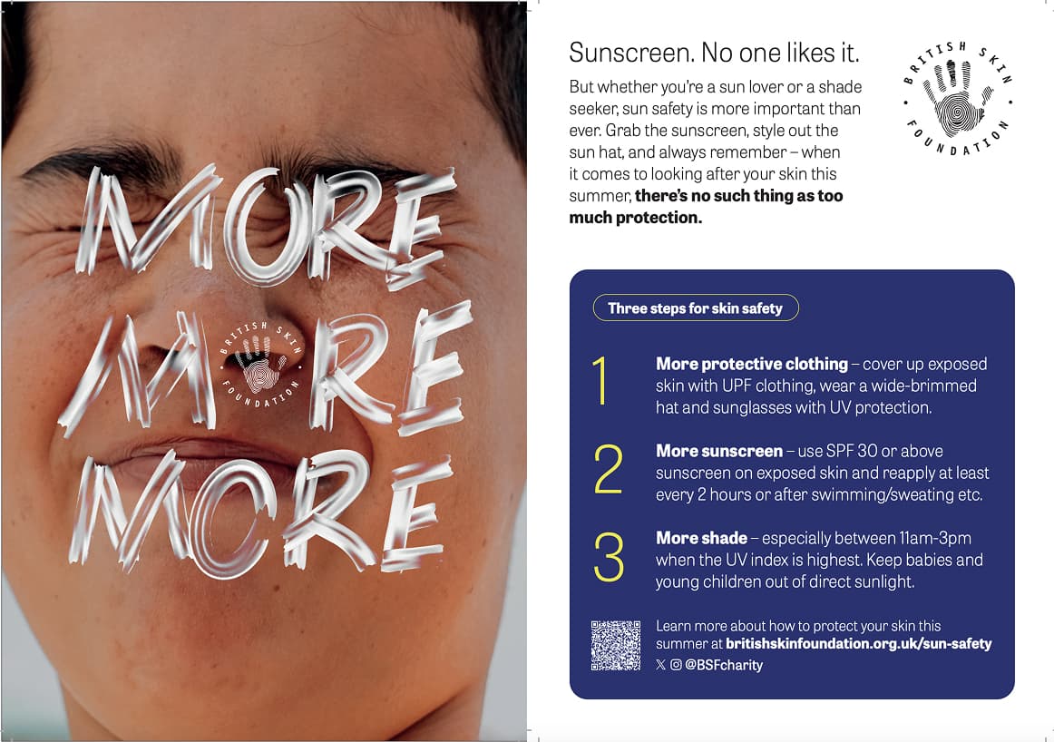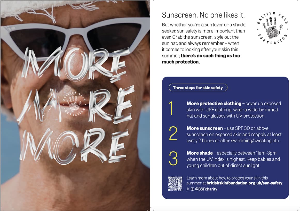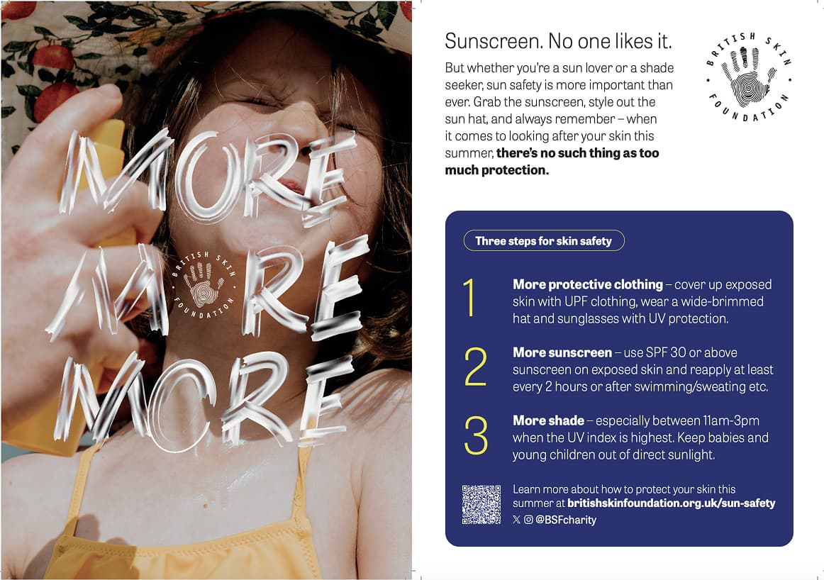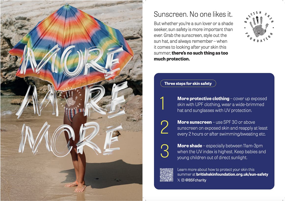 In response to this, the BSF has launched its ‘More, More, More’ sun safety campaign. This initiative encourages Brits to wear more protective clothing, use more sunscreen, and seek more shade during the summer. With a quarter of those surveyed admitting they forget about sun safety and need regular reminders, this campaign provides the necessary prompts to help the British public maintain their skin health.