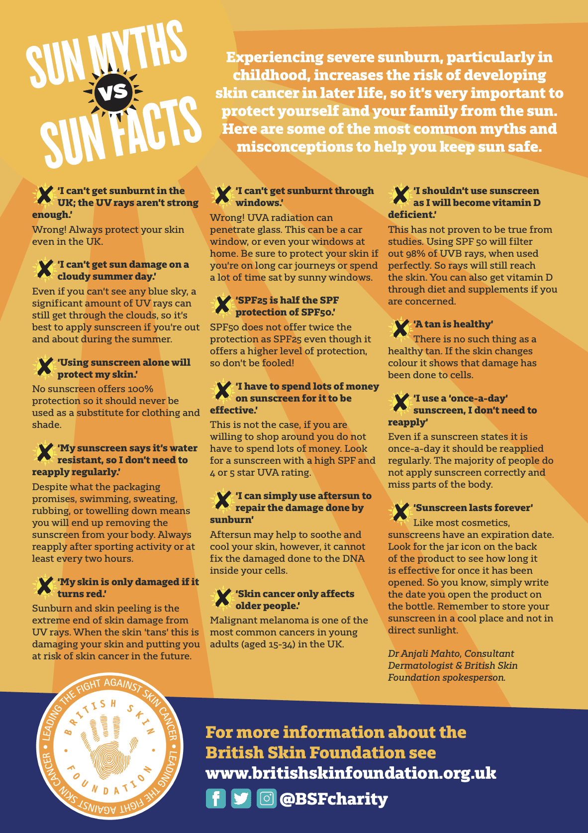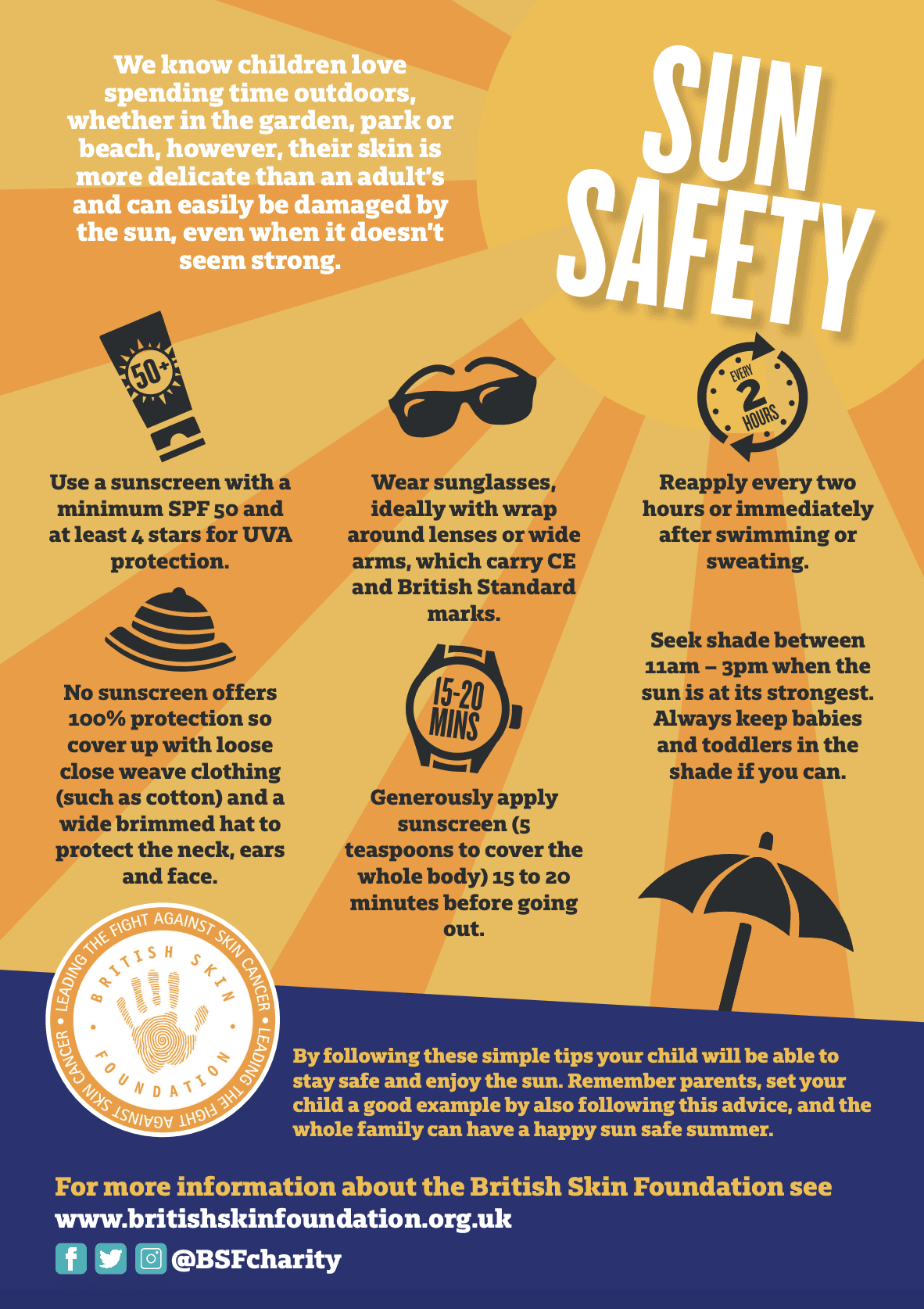 However, there is lots of information, including various myths, around sun protection, so the BSF has put together some materials for you to download to equip you with the knowledge you need to protect your child(ren) from the sun.